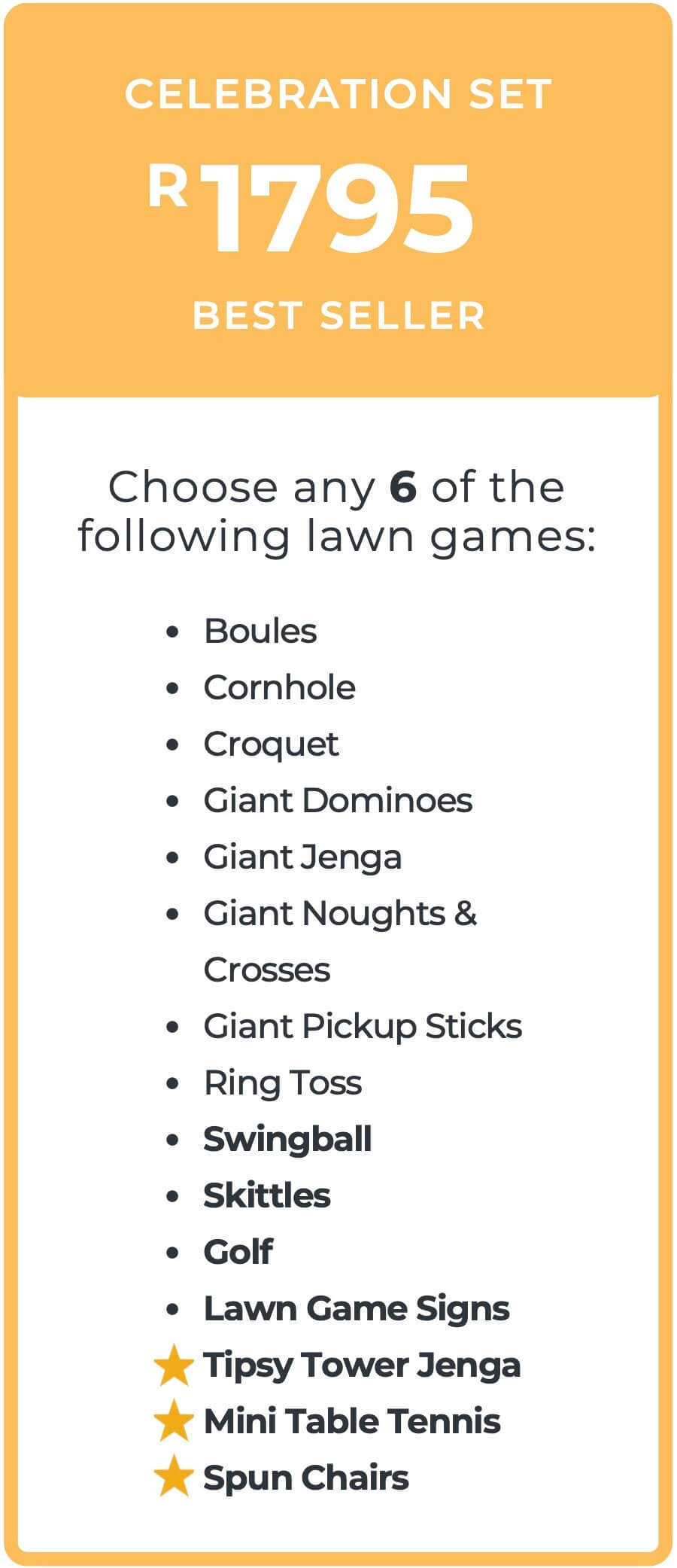 Based at our Firgrove warehouse in the Western Cape, LawnGames4You is a trusted lawn games rental company servicing Cape Town and the surrounding areas. Our games are perfect for weddings, birthday parties, and corporate functions and events of all sizes.