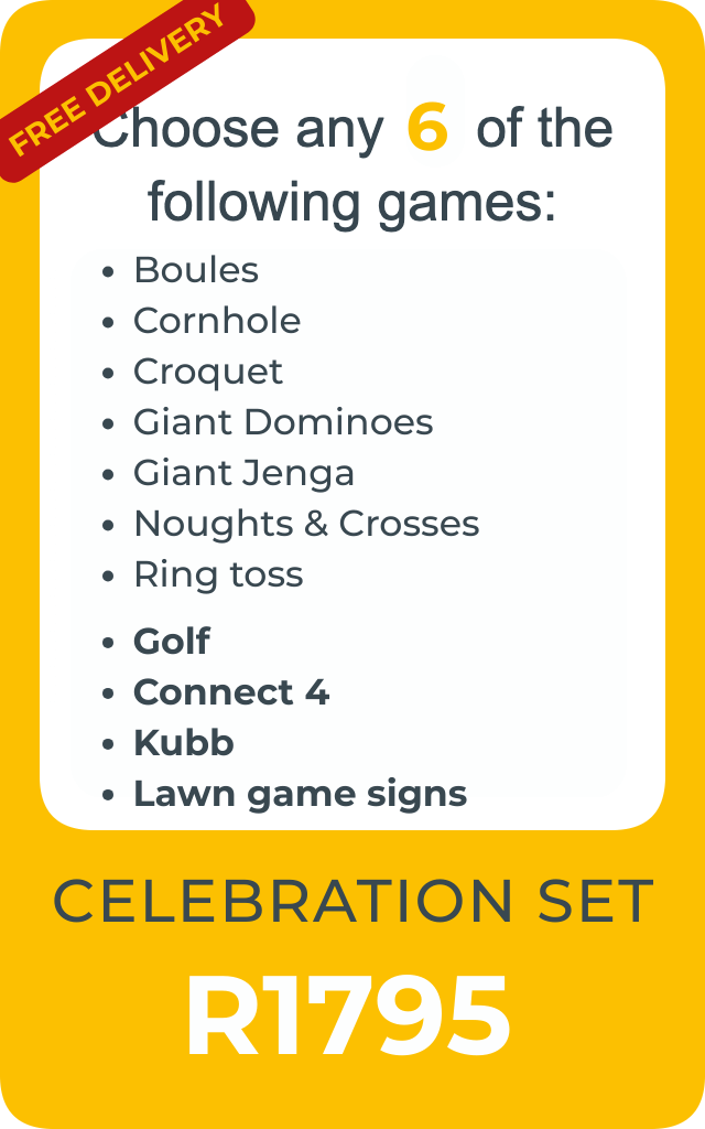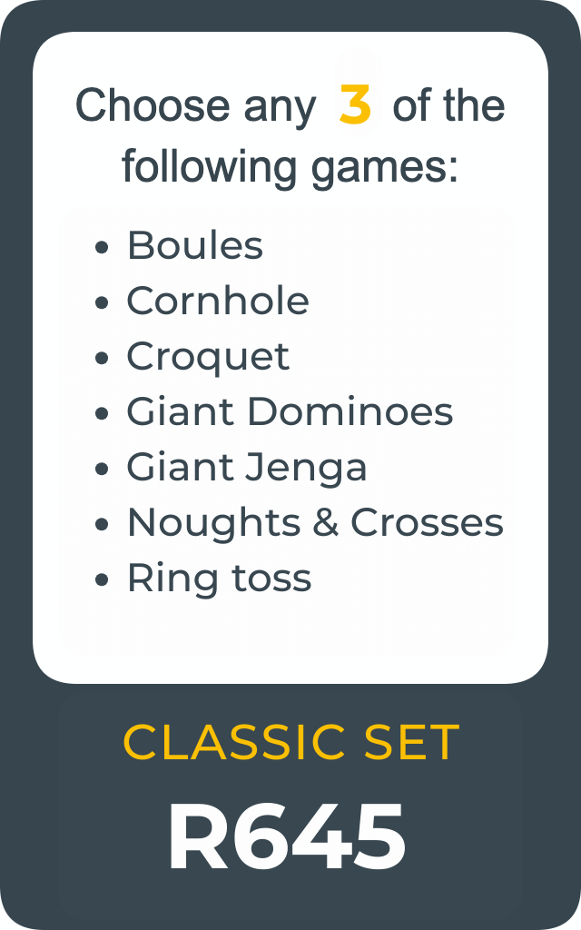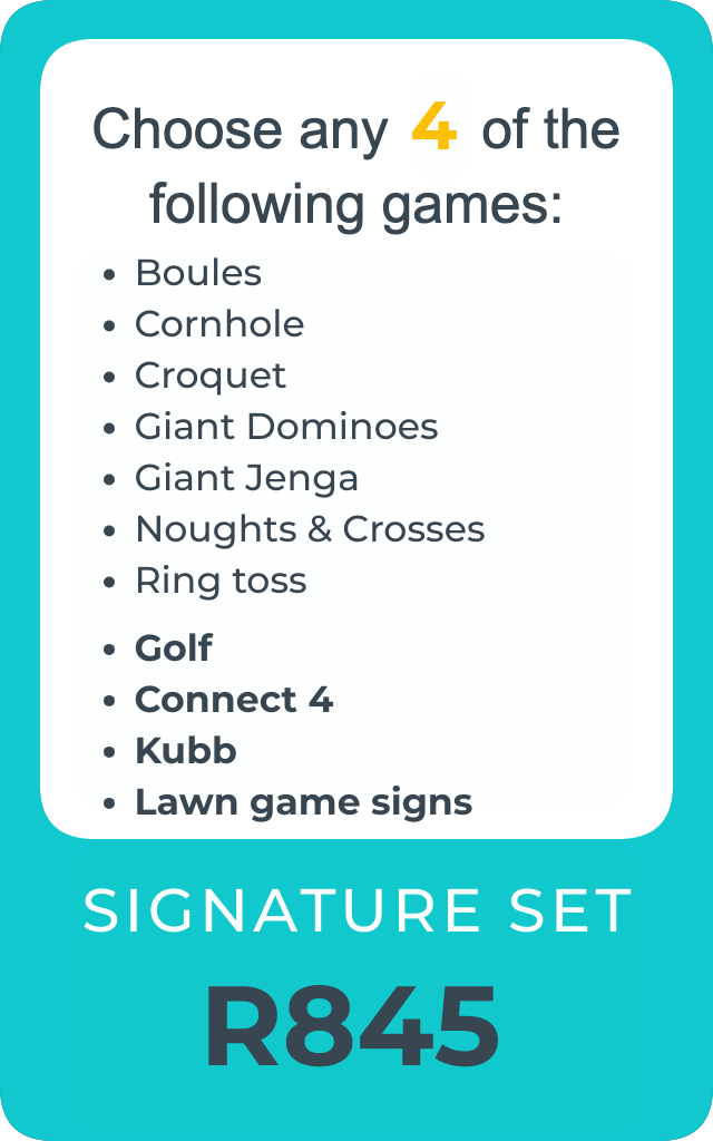 We rented lawn games for our wedding cocktail hour and then brought them back out the next day at our post-wedding braai with our guests, and they were a blast both times! The prices were very reasonable and the whole process was seamless. We lost one of the boules balls (again, so sorry!) but the replacement fee (taken out of our deposit) was very reasonable as well, and then they refunded the rest promptly. Definitely recommend Lawn Games 4 You, would definitely hire from them again for future events!